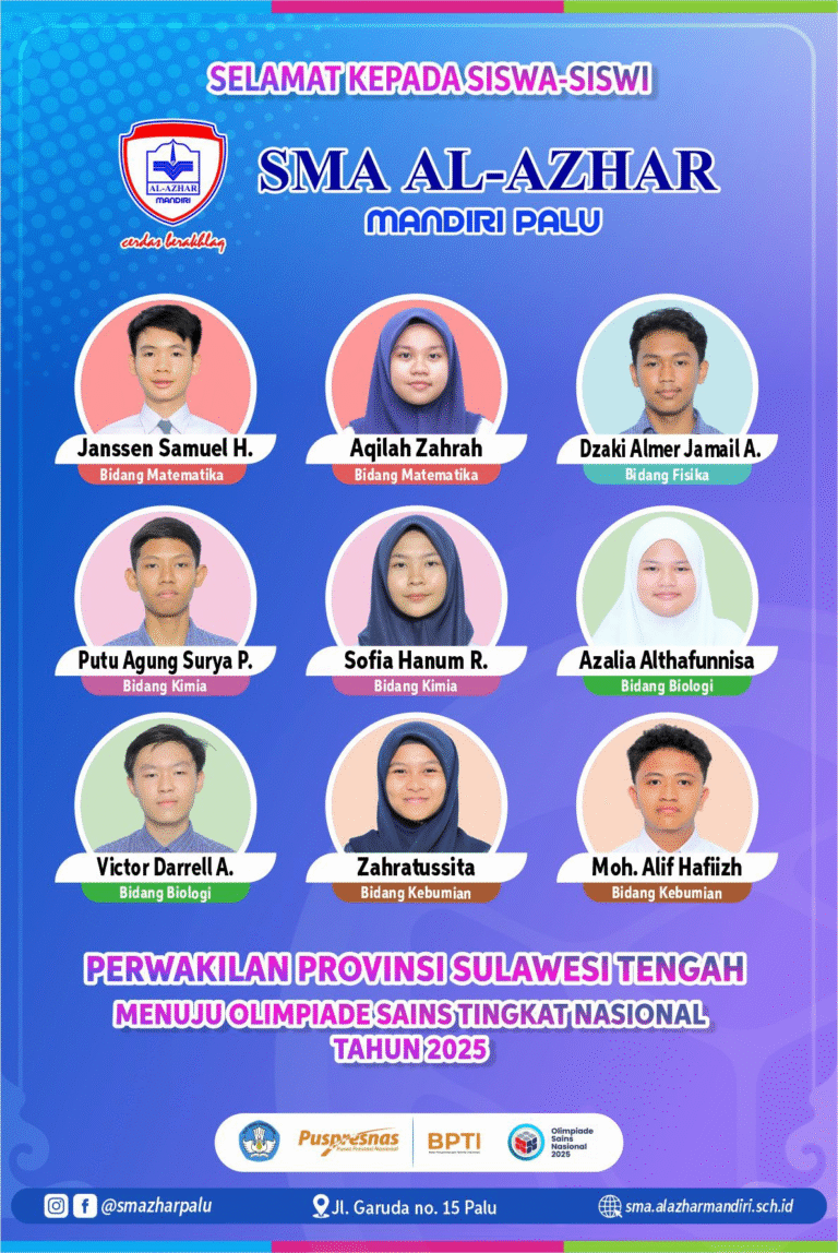 Selamat dan sukses kepada siswa-siswa SMA AL AZHAR MANDIRI PALU yang akan menjadi wakil Sulawesi Tengah pada gelaran Lomba…