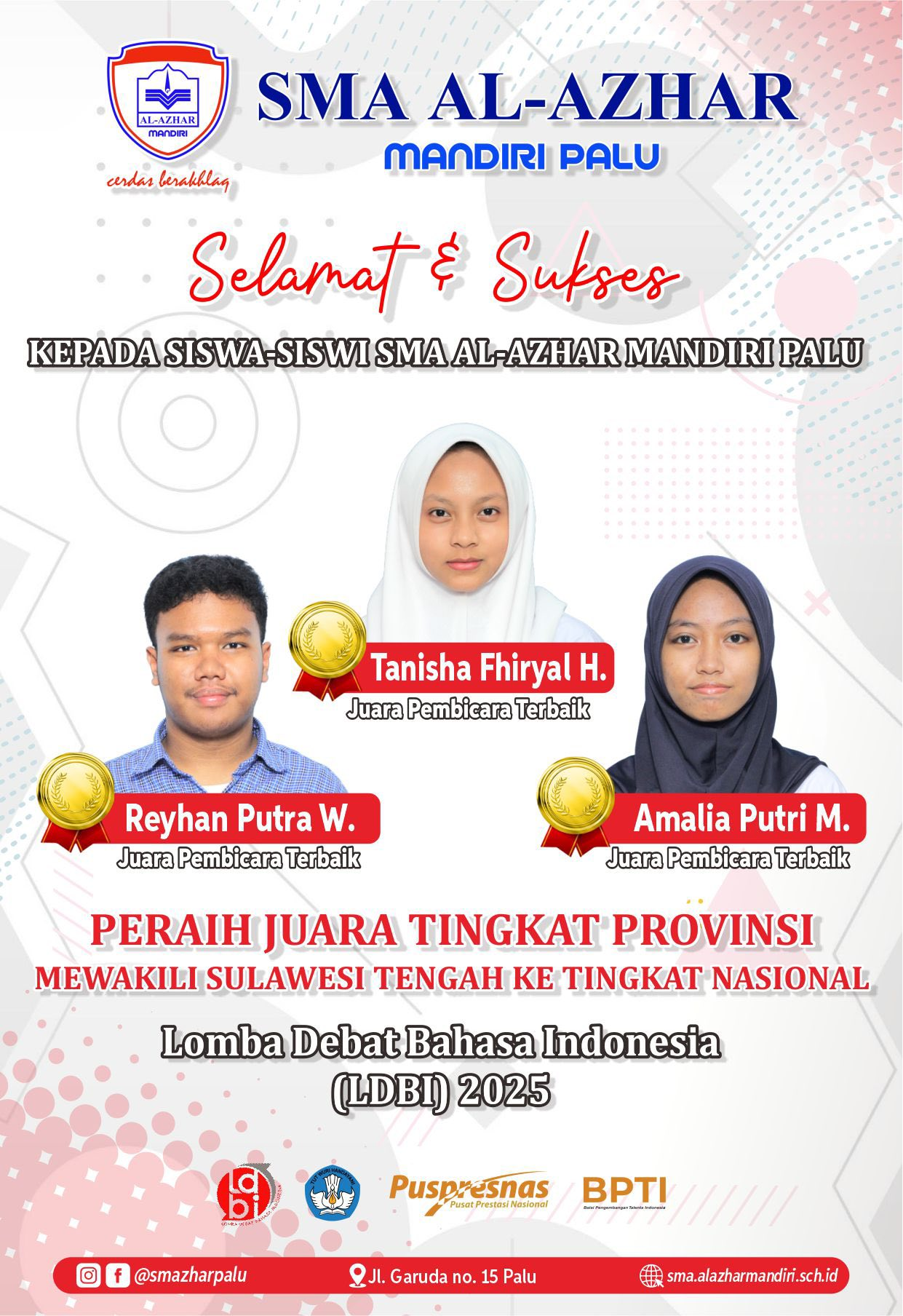 Selamat dan sukses kepada siswa-siswa SMA AL AZHAR MANDIRI PALU yang akan menjadi wakil Sulawesi Tengah pada gelaran Lomba…
